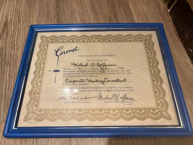 My dad was in sales or an entrepreneur his whole life. In fact, I came across a certificate from his early years when he was a marketing consultant at a company (or as the certificate says, a “customer marking consulting” – friendly reminder to always spell check!).