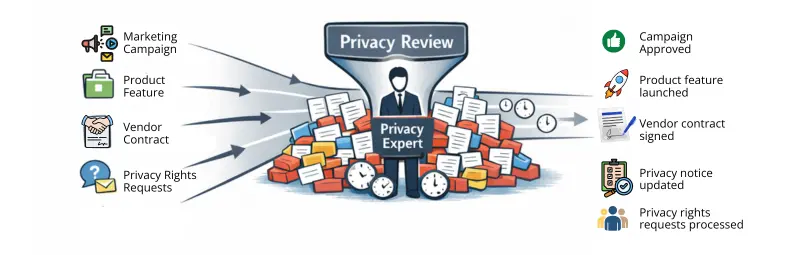 A marketing team might be ready to launch a campaign, but can’t determine whether their tracking approach is acceptable. A product team may be waiting on a privacy review to finalize a feature. I’ve seen vendor contracts sit for two weeks because the only person who reviews data processing terms was unexpectedly out.