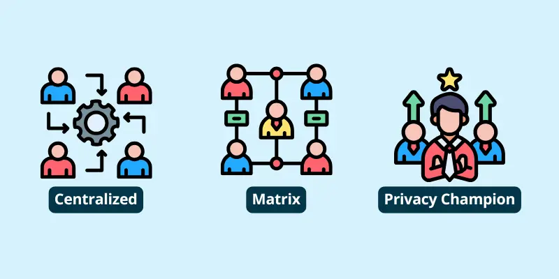 Some opt for a centralized approach where all decisions come to privacy. Larger companies opt for matrix style and have privacy experts embedded into groups or functions. While some companies sprinkle not official privacy pros into the company, but privacy champions.