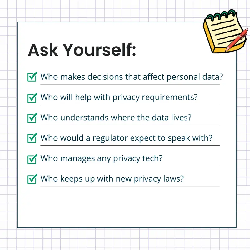 Before companies can have effective privacy processes on conducting a data inventory, performing privacy risk assessments, honoring privacy rights, reviewing new vendors, etc., companies need to identify people responsible for participating in each of these areas.