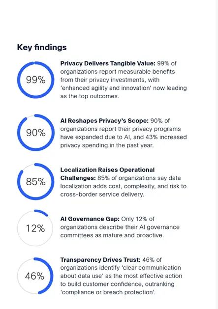 According to the Cisco 2026 Data Privacy Benchmark Study, 99% of organizations report measurable benefits from their privacy investments, with enhanced agility and innovation now leading as the top reported outcome. Privacy done well is not just a compliance cost. It is a business advantage.
